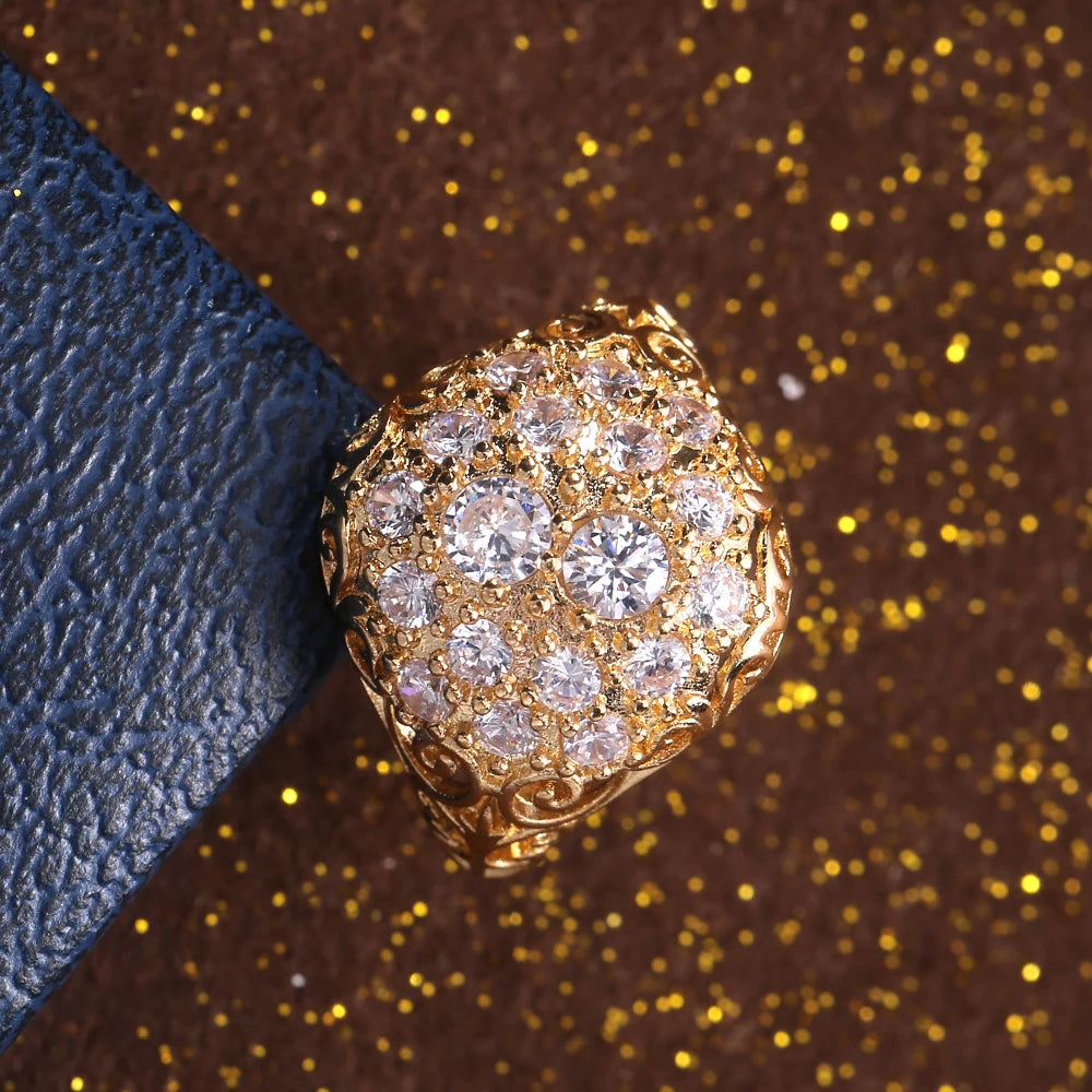 Huitan Gorgeous Gold Color Bridal Wedding Rings Full Cubic Zirconia Brilliant Lady Party Accessories High-quality Women Jewelry