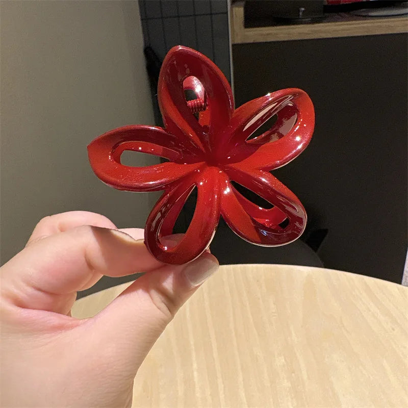 New Irregular Red Flower Hair Clip for Women Simple Temperament Back of The Head Hair Claws Barrettes Girl Hair Accessories